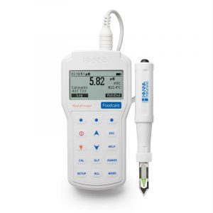 El HI98163 es un medidor de pH portátil resistente al agua que mide el pH y la temperatura utilizando el electrodo de pH FC2323, específico para medir en carne con una cuchilla perforadora de acero inoxidable. Este medidor profesional e impermeable cumple con los estándares IP67.