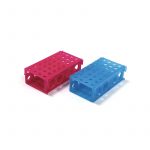 EL PACK INCLUYE – 2 soportes universales de plástico para tubos de ensayo y tubos de centrífuga con un diámetro menos o igual a 30 milímetros, 3 caras. Una gradilla es roja, y la otra es azul.